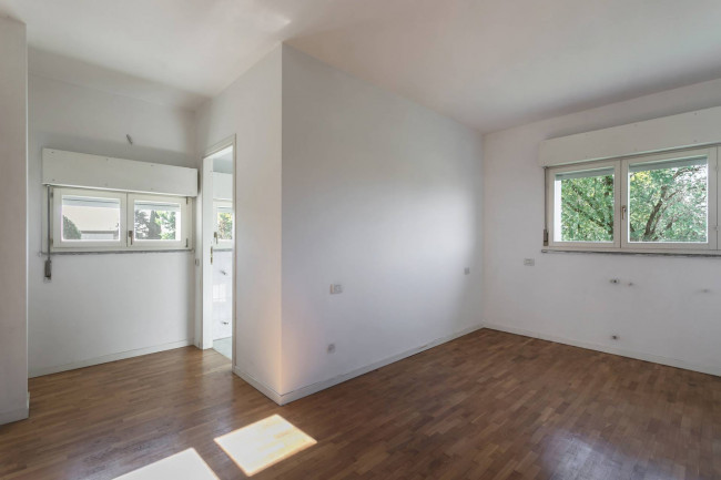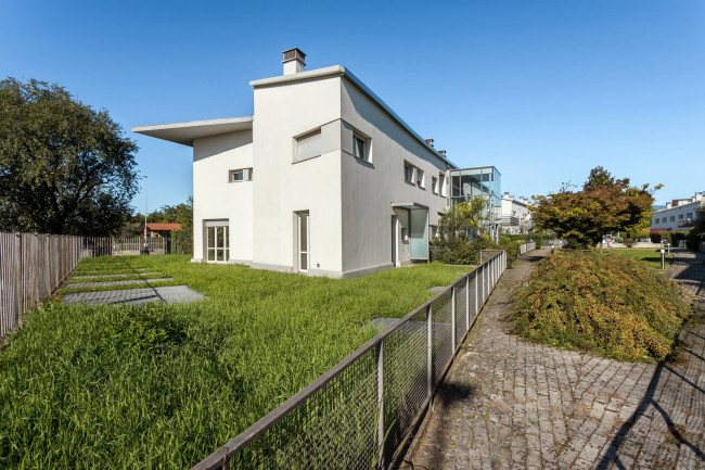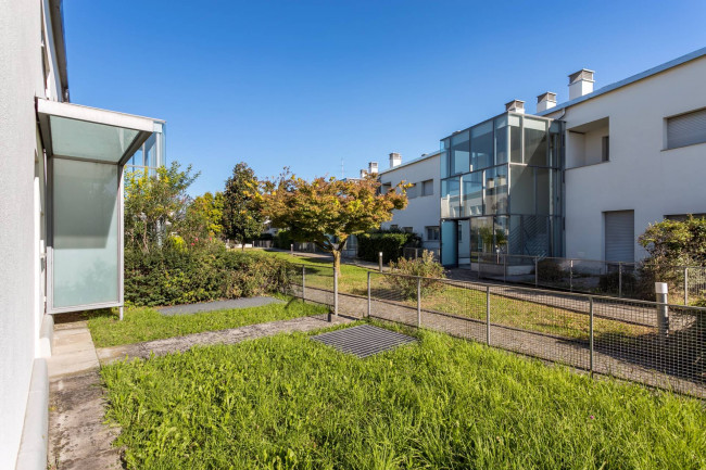 La villa, mai abitata, si sviluppa su due livelli abitativi ed è completamente indipendente, con accesso pedonale e giardino esclusivo di 215 mq, perfettamente piantumato e riservato.