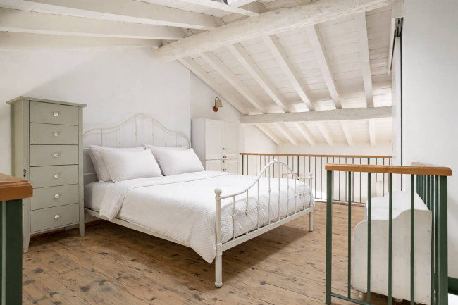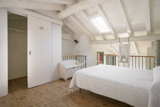 La zona notte, soppalcata, offre un ambiente suggestivo e ben organizzato, arricchito da cabina armadio e da una comoda intercapedine ideale come spazio contenitivo.
