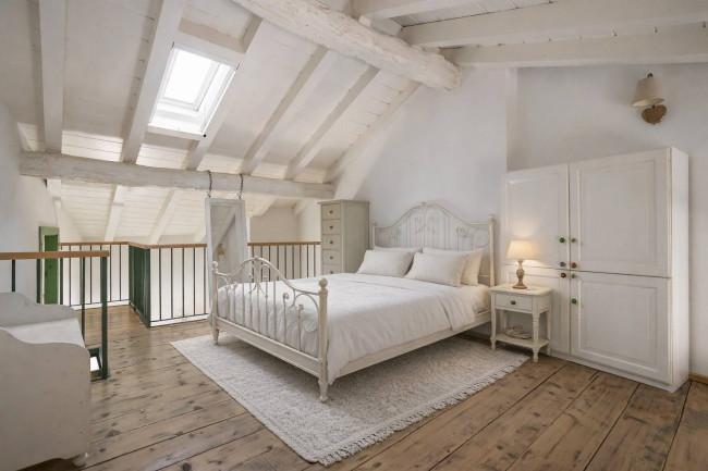 L'immobile è valorizzato da dettagli di grande charme, come le travi a vista bianche, i muri in pietra e i pavimenti in cotto, che donano calore e autenticità agli ambienti.