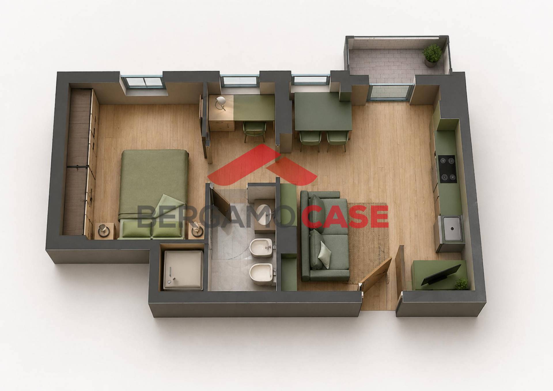 La zona è strategica: ampio parcheggio sotto casa, vicinanza a scuole, stazione, centro città e principali istituzioni di Bergamo.
